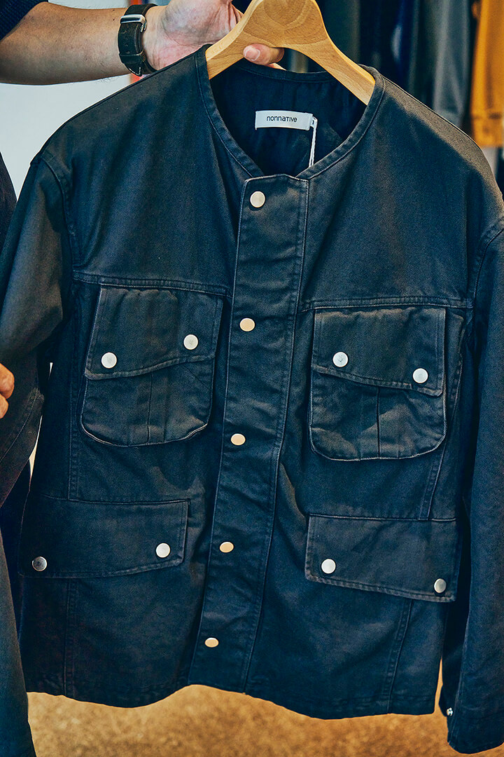 藤井氏がnonnativeを手掛けてから24年。ブランド初期と現在を比べても、《nonnative》には一貫した空気が流れている。時代の変化に合わせたアップデートを重ねながらも、根底にある美意識は揺るがない。まるで、藤井氏の信念、そのスタイルを表現しているようなムードが漂うその物作り。まさしく一本筋が通っていることを強く感じさせてくれる。