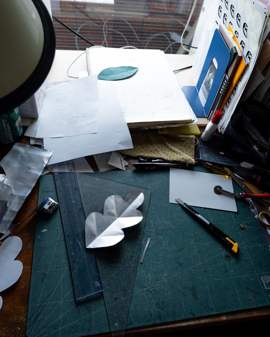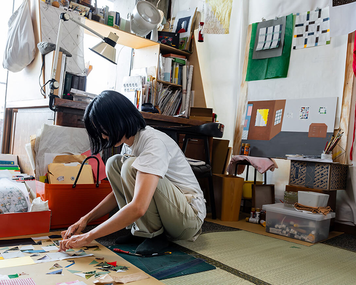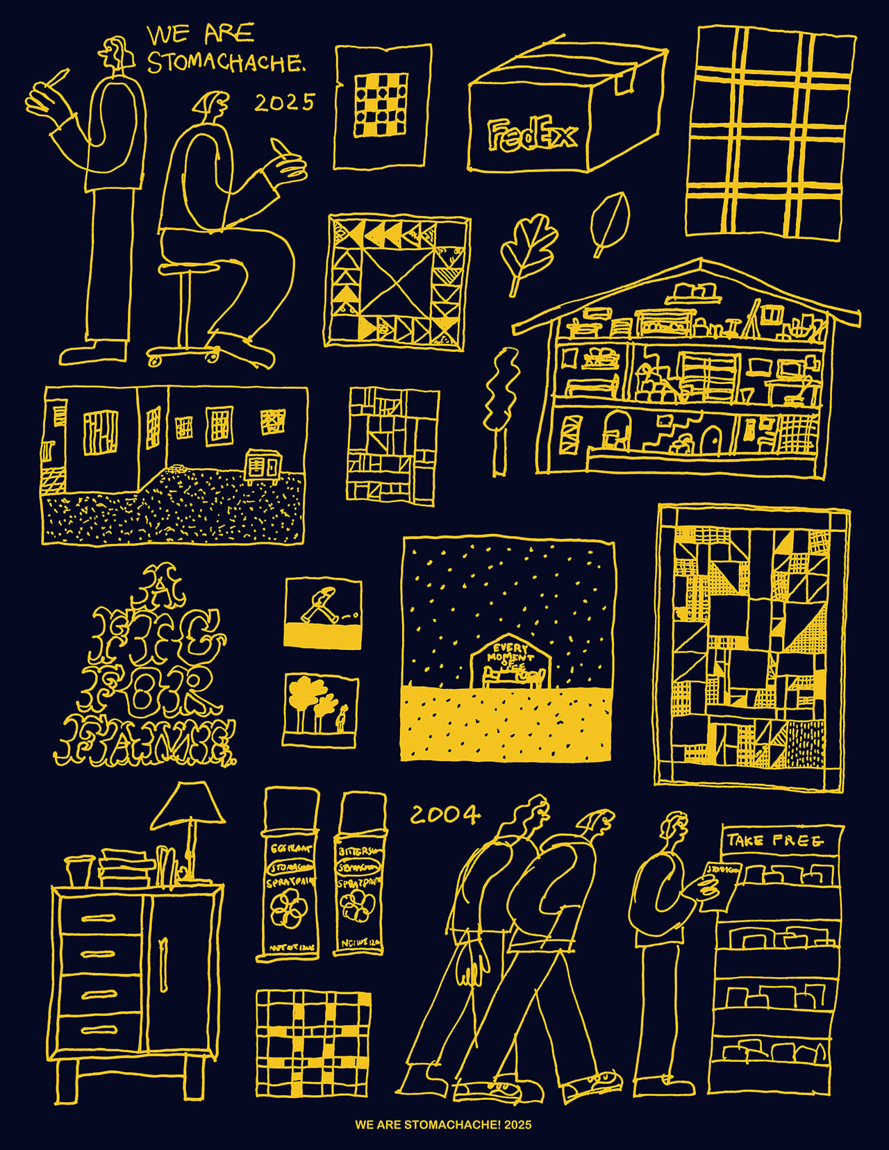 コピー機のざらついた質感、ノートに⾛らせた線、家庭的なモチーフ…。日常の身近な断⽚を、普遍的な物語へと引き上げるアーティストユニット「STOMACHACHE.」の個展“WE ARE STOMACHACHE! 2025”が大阪・南船場のギャラリー『i GALLERY OSAKA』で開催中。