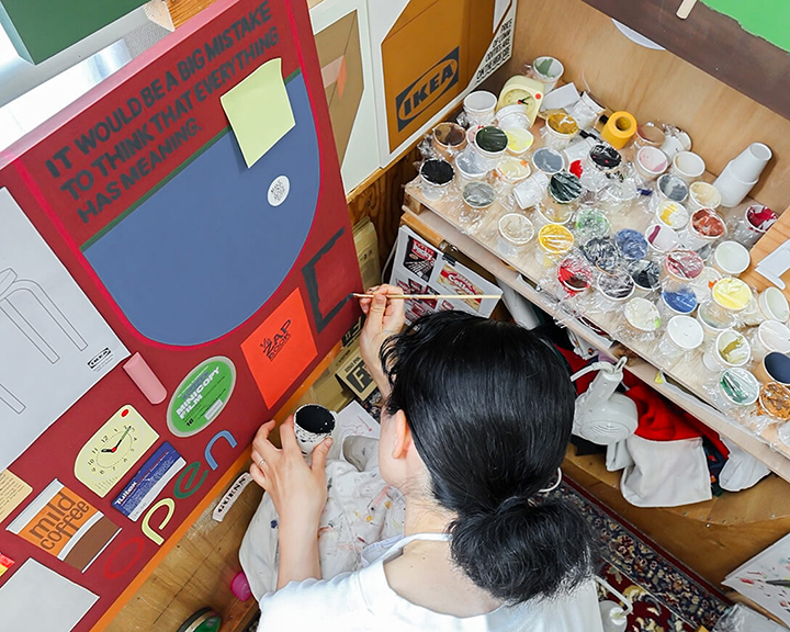 ペインティングを中⼼に展開される今回の作品は、媒体を超えて拡張し、⾝近な断⽚を新しい秩序の中に再編。